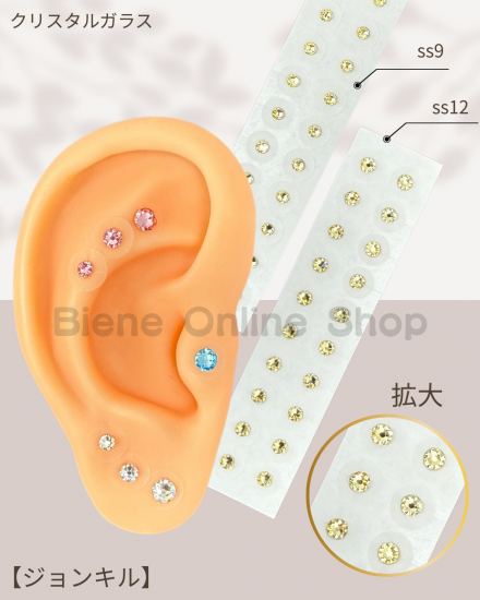 - クリスタルガラスサイズ: ss9(約2.5mm)、ss12(約3.1mm)