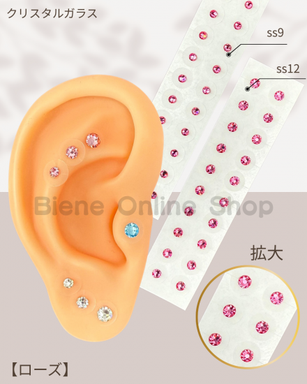 - クリスタルガラスサイズ: ss9(約2.5mm)、ss12(約3.1mm)