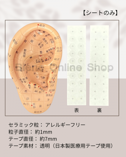 セラミック粒(アレルギーフリー)と日本製医療用テープを採用した安心仕様です。